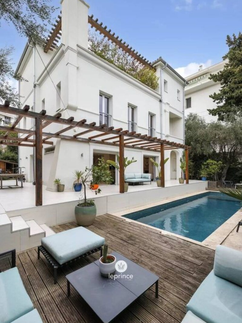 Nice residential area of Cimiez, close to the Marc Chagall Museum, the city center and Nice's most renowned schools. Attractive modern Architect's Villa with a total surface area of 290m2 on a 600m2 flat plot with swimming pool, surrounded by wooded terraces. On the garden level, a beautiful entrance hall leads to the 76m2 living space, comprising a lounge with fireplace, dining room and corner kitchen, each of which enjoys a terrace thanks to large bay windows. Office, plenty of storage space and laundry room. On the upper floor, four bedrooms, three of which are en suite with private bathrooms. The top floor acts as a Private Floor, featuring a 31m2 Master Suite with a large Dressing Room, a superb Bathroom with Bathtub and Italian Shower, both giving access to a 30m2 open-air Terrace bathed in sunlight. A room converted into a gym completes the first floor. Villa in excellent condition, with modern amenities and comfort, ducted air-conditioning, large bay windows, electric roller shutters, videophone and alarm. Large tiled floors in the Living Area, solid parquet flooring in the Bedrooms. Numerous outdoor parking spaces secured by electric gates. Full presentation file available on request. Fees are payable by the Vendor. Information on the risks to which this property is exposed is available on the Géorisques website: georisques.gouv.fr État des risques et pollution: réalisé (null).