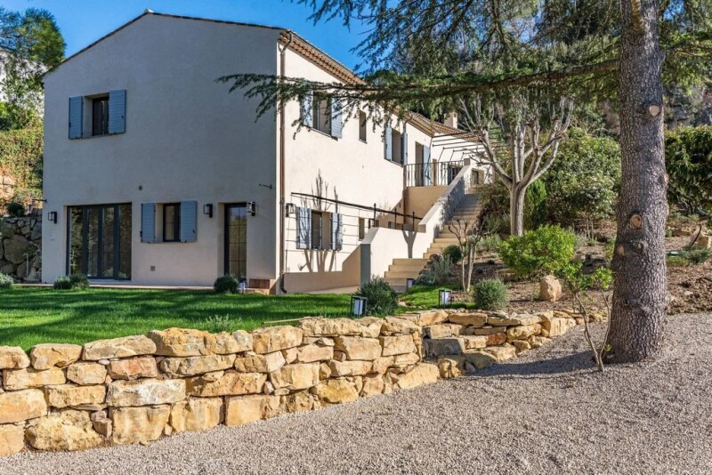 High quality appointments for this amazing property located in a dominant position close to the village of Valbonne. Very bright reception area opening onto large terrace, superb fitted kitchen, large office space, 5 ensuite bedrooms, 2 on garden floor. Beautiful staircase leading into a second living space with kitchenette. Landscaped garden of 3,990m2 with heated pool and panoramic views on surroundings hills. Carport. Possibility to build an other villa for guests. Contact us for more details.