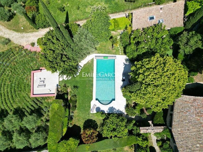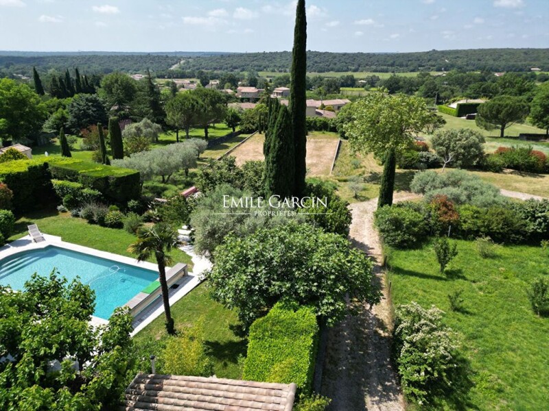 15 minutes from Uzès, in a charming, quiet village, late 18th century village house, on 4000m² of land with a view of the countryside. The house has retained its authenticity and charm, stone and terracotta floors, Provençal-style ceilings, solid wooden doors, vaults... 6 bedrooms, cellars, garage, swimming pool, pool house, workshop.