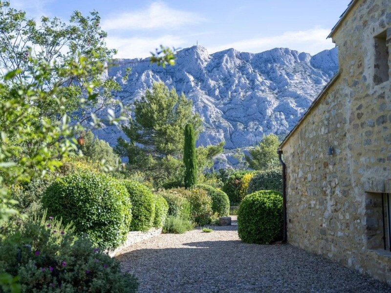 Come and discover a true haven of peace just a few kilometers from Aix-en-Provence, where absolute calm and breathtaking views of the Sainte-Victoire mountain await you. This unique property, a fully renovated 18th-century stone farmhouse, is surrounded by an idyllic garden of olive trees, fruit trees, and lavender, and extends over 17 hectares of preserved nature. The farmhouse is composed as follows: Ground floor: A double living room of 90 m2 bathed in light. A large equipped kitchen opening onto a spacious terrace shaded by two majestic plane trees. A master suite with a dressing room and bathroom, located by the pool, offering comfort and privacy. A large children's area including a playroom-dormitory, a mezzanine, and a bathroom, easily convertible into a suite, with independent exterior access for each room. First floor: Three bedrooms, one with a terrace offering stunning views of the Sainte-Victoire. A bathroom and a shower room. One of the bedrooms also has exterior access via a stone staircase, adding charm to the place. The interior architecture favors noble materials such as light wood, tinted cement, lime, and parquet flooring, creating perfect harmony with the natural setting and a warm, comforting atmosphere. The garden, a true green haven, offers multiple relaxation spaces: an orchard and vegetable garden for nature lovers, several terraces perfect for unwinding, a beautiful summer kitchen to enjoy the warm summer days, a heated pool (10x5m) with an outdoor shower inviting you to relax, and a shaded petanque court ideal for convivial moments. This exceptional property stands out for its prime location and authenticity, offering a unique living environment that combines tranquility, nature, and modern comfort. Perfect for lovers of secluded, preserved nature, it represents a rare opportunity not to be missed.