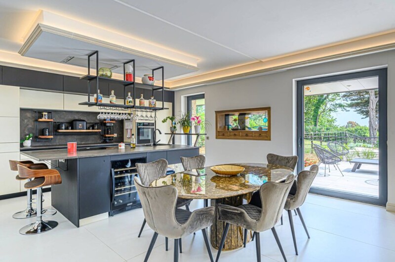 Exceptional property with panoramic views nestled in the heart of a wooded park of more than 3 hectares. This property offers you a breathtaking panorama of the Laïta estuary and the island of Groix. A true haven of peace where nature and luxury meet. A generous and bright main residence • Living room, a friendly space with open kitchen, dining room and monumental fireplace and access to a large terrace overlooking the sea and the Laïta • A second intimate living room • A master suite: a cocoon of well-being with full bathroom, dressing room and office. • Vaulted wine cellar for lovers of fine wines • Upstairs: three apartments, two of which have two suites, a living room with kitchen and a private terrace and an apartment with a living room with kitchen and a suite. Two lodges: Comfortable and independent, each with a terrace and a jacuzzi. • The first lodge offers a living room and open kitchen, a bedroom, a bathroom • The second lodge has a living room with open kitchen, two bedrooms and a bathroom. The advantages of the property: • Spa with counter-current swimming for moments of absolute relaxation. • Sports and leisure room adaptable to your desires (yoga, fitness, or office space, etc.) • Garage • Excellent energy and climate performance (geothermal heat pump) • All accommodations are air-conditioned • Landscaped park forming a natural setting in the heart of a remarkable environment classified Natura 2000 • Proximity to beaches and water activities to enjoy the joys of the sea and water sports A sustainable investment: This property represents a safe investment in a popular area of South Brittany. Whether as a primary residence, secondary residence or for a tourist reception project, it offers multiple possibilities. Contact us to organize a visit and discover this exceptional property.