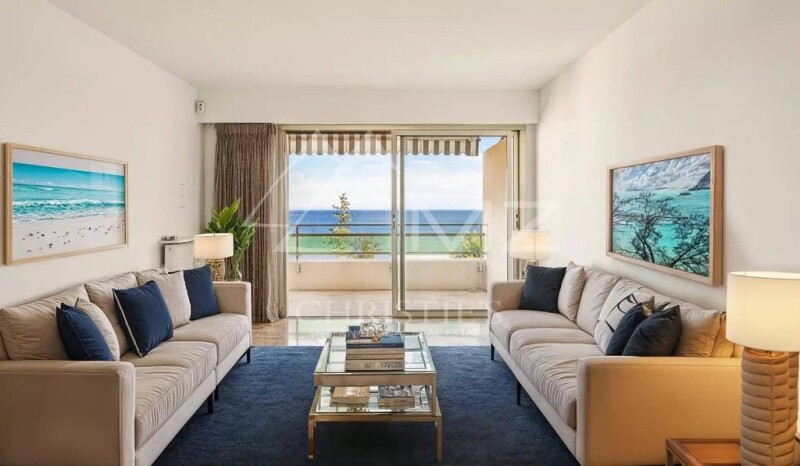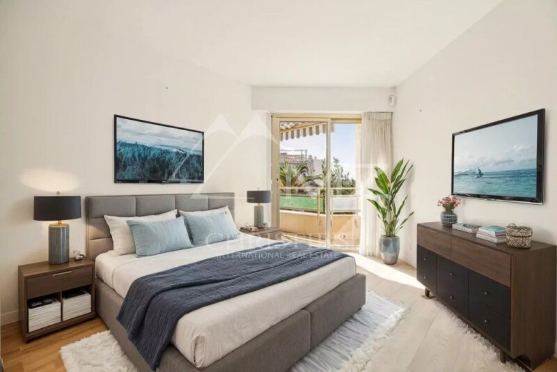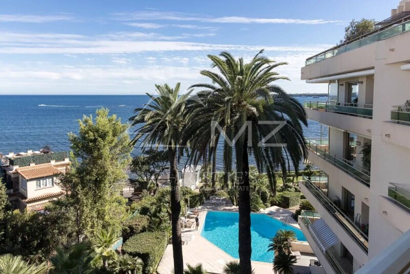 SOLE AGENT! 3-room apartment of approx. 67 m2, located on the fourth floor of a highly exclusive residential complex with private concierge, beautiful garden and swimming pool, facing the sea and offering panoramic views over the Lérins Islands to Cap d'Antibes. This apartment is composed of a living room, a dining room, an independent fitted kitchen, 2 bedrooms with a shower room, and a guest toilet. This property has two lovely terraces. The one of the living area overlooks the sea and the other on the bedroom side. A cellar and indoor parking complete this property.