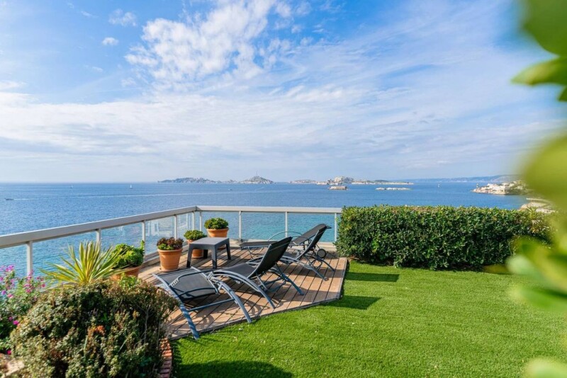 Exceptionally rare on the market, a penthouse-style rooftop villa of 182 m2. Accommodation featuring a spacious living room with large bay windows overlooking the sea and the harbor of Marseille, extended by a suspended garden of approximately 500 m2. Large kitchen with a utility room. Three bedrooms, including a beautiful master suite with breaking sea views. High-end, highly secure residence with swimming-pool, tennis courts and a concierge. A storage cellar and two enclosed garages complete this exceptional property.