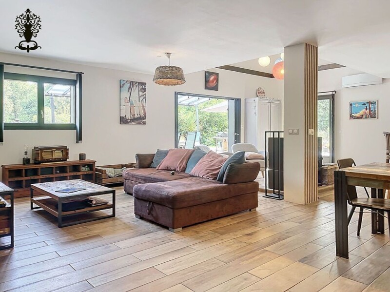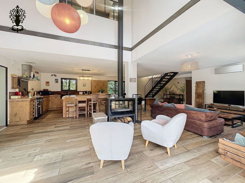 Mimizan promenade fleurie: in a calm, protected and privileged environment, recent house of 257m2 on a plot of 5800m2 Benefiting from the tranquility of an airial of more than 3200m2, this property offers a main house where space and brightness have been given pride of place. Its large central living room of 72m2 benefits from an open and equipped kitchen and an insert. The ground floor also has an annex room of 27m2, a master suite with dressing room, shower room / bathroom, an entrance and reception toilets. Upstairs, around the cathedral ceiling you will find 3 additional bedrooms each including a shower room. A gîte with a living room / kitchen opening onto a terrace, two bedrooms and a shower room, increases the reception potential of this property: it is independent of the main house but can be directly attached to it if necessary. Out of sight, friendly and warm atmosphere guaranteed 5 minutes from the flowery promenade and the center of Mimizan and a few minutes from the ocean beaches! Additional information: parking area, swimming pool area and pétanque court. Average energy prices indexed on January 1, 2021 (subscriptions included): Between EUR980 and EUR1,400 per year. Selling price: EUR890,000 hai including 4% agency fees payable by the purchaser (3.03 % fees incl. VAT at the buyer's expense.).