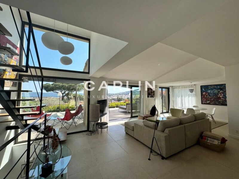 This sublime recent villa is located near the city center of Sainte-Maxime and the beach, without vis-à-vis, it offers a great tranquility and a view of the sea and Saint-Tropez. Completely renovated and enlarged, it has a total area of 285 m², including 213 m² of living space. It consists of an entrance, a large bright living room, with an open and equipped kitchen, utility room, 5 bedrooms, 1 bathroom, 4 shower bathrooms, a wine cellar, pantry, gym. The property also has 2 garages, a salt heated swimming pool and a perfectly wooded and beautifully lit garden for summer evenings. Note: the areas are provided for information only Information on the risks to which this property is exposed is available on the website Géorisques: www.georisques.gouv.fr.