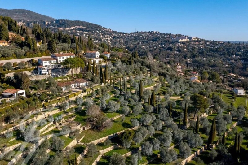 In a very quiet and most private setting, the elegance and refinement of a historic property in perfect condition, built in 1950 by Héléna Rubinstein with the renowned architect Louis Süe, comprising a main house of 491 sq.m living space, two guest houses, a caretaker's accommodation and a former sheepfold renovated throughout, amidst enchanting grounds of 31 523 sq.m. The ground floor of the main house features an office, and three bedrooms - each with an en-suite shower room. The garden level includes a reception room, a games room, the living and dining room with adjoining kitchen, utility room and laundry room. The first floor is dedicated to the master suite with dressing room and complete bathroom, as well as a 5th suite with shower room. The first guest house encompasses a living room, a kitchen, 2 bedrooms with adjoining shower rooms. The second guest house comprises a living and dining room, an open-plan kitchen with utility room and laundry room. On the 1st floor, three bedrooms, two shower rooms and a full bathroom. The caretaker's house of approximately 70 sq.m offers a living room, a kitchen, two bedrooms, a bathroom and includes three closed garages. An old sheepfold of 86 sqm living space, tastefully renovated throughout, called 'La Maison des Artistes' features a large living room, a dining room and open kitchen, a spacious bedroom with shower room. Five closed garages in all, 5 gates. The park is planted with 450 olive trees, includes several springs, a heated swimming pool and a petanque pitch. A timeless journey for lovers of history and architectural references in a classy setting.