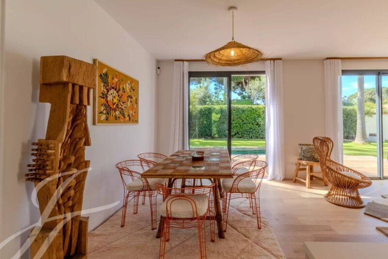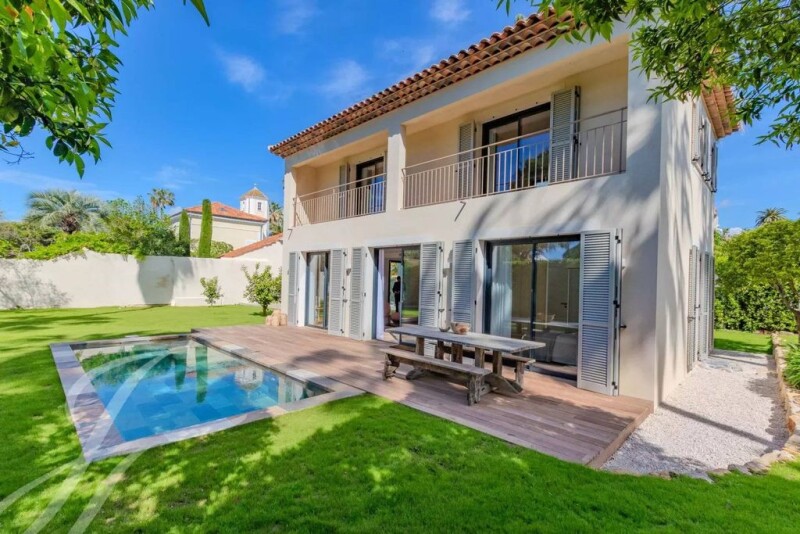 New Provence house 50 m from the sea on the west side of Cap d'Antibes. On a flat plot of 914 sqm. The villa totals 169 sqm and consists of: On the ground floor: An entrance, a large living/ dining room with open kitchen. A bedroom with dressing room and a shower room with toilet. A guest toilet. Upstairs: Hallway, two bedrooms and two shower rooms on a balcony. Basement: A large play room, a laundry room, a technical room. A large parking, a swimming pool and garden with trees.