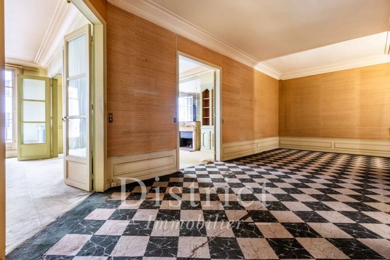 District MONCEAU offers you this spacious 245m² apartment in a luxury building dating from the 1930s, secured by a live-in janitor. Located on the 2nd floor with elevator, it benefits from a through-plan and generous volumes. It comprises a beautiful entrance gallery, a spacious double reception room, a dining room, 4 bedrooms, a separate kitchen, a bathroom, a shower room and a separate toilet. The property boasts high ceilings, parquet floors and period fireplaces, creating an undeniable charm. It is in need of renovation, but offers great potential for conversion. Shops and numerous schools are also just a few steps away, providing an ideal living environment for a family. A cellar Ideally located. A must-see!.