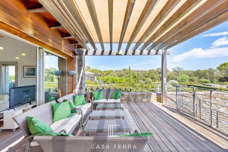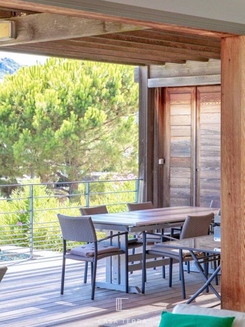 HD virtual tour on request - Ref : 'Alba Just 80 m on foot from the magnificent Santa Giulia beach. 'ALBA' is a 143 m² villa with breathtaking sea views. Over 2 main levels. it has a 90 m² basement that could be converted into a cinema or sports room. served by a private lift integrated into the building. Situated in a dominant position away from prying eyes. it boasts an uninterrupted 180° view over the sublime bay of Santa Giulia. as well as direct. private access to the beach via a code gate. Facing due south. 'Alba' is the largest villa on the confidential. waterfront estate. which is perfectly maintained all year round. Set in a private landscaped garden of just under 400 m². its architecture combines resolutely modern lines with more authentic touches of wood and Orezza stone in total harmony. Quiet and fully air-conditioned. the main level of 'Alba' comprises a fully-equipped kitchen opening onto a lounge and dining room. which extend through large picture windows onto a shaded 50 m² wooden terrace with summer kitchen. where the view is breathtaking. It currently offers 3 bedrooms with shower rooms and built-in wardrobes. all located on the garden level facing the 8 m x 4 m heated swimming pool with jacuzzi and 80 m² terrace. A 4th bedroom with en-suite shower room can be created immediately on the main level by adding a partition wall. as the networks are already in place. A final asset is the 90 m² tiled basement with 1.9 m high ceilings. where a 24 m² cinema. sports or games room. a wine cellar and over 40 m² of storage space can be created. Alba' has two private parking spaces with a charging point for electric vehicles. A rare opportunity in the area. More photos are available after making an appointment by telephone or directly at the agency. - Casa Terra - Real Estate - is a confidential estate agency specialising in prestige property transactions. as well as a consultancy firm with offices in Sainte-Lucie de Porto-Vecchio and Paris. Fees are payable by the vendor.
