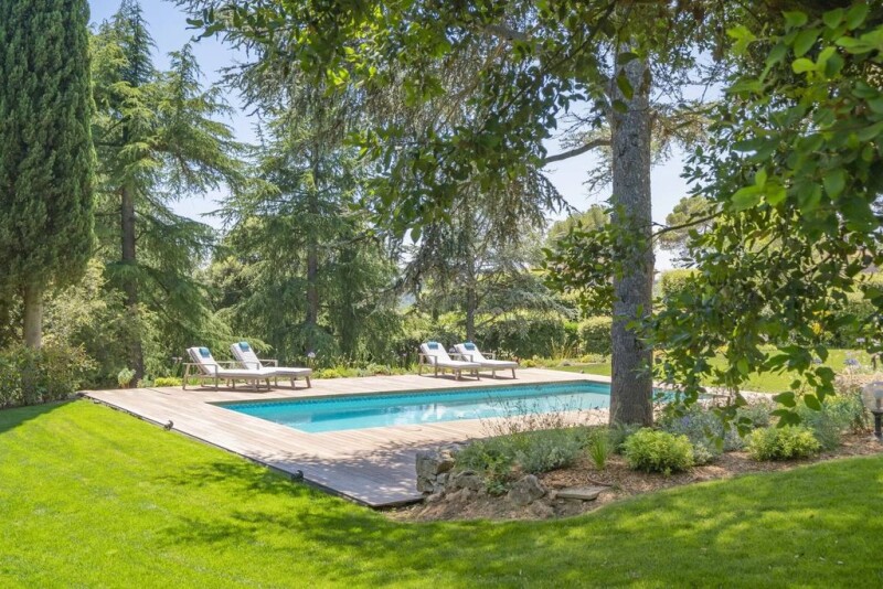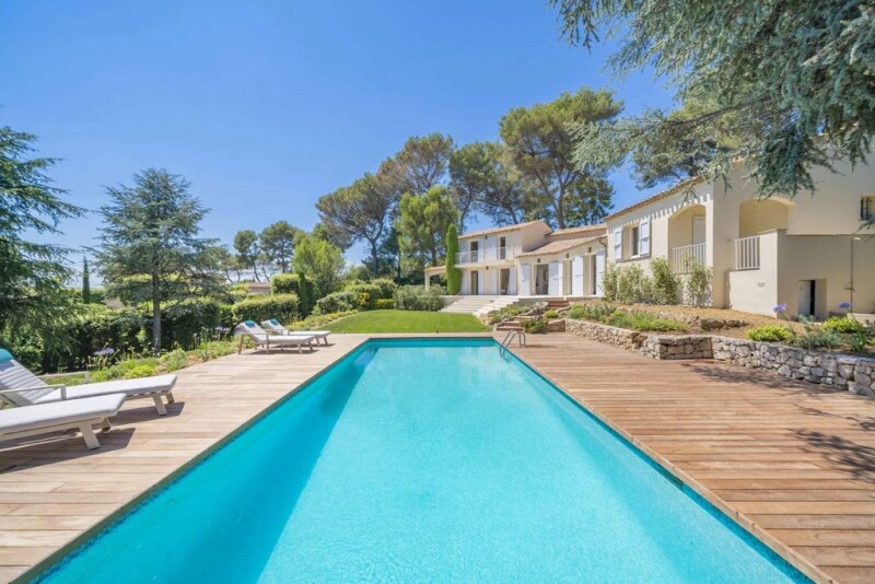 Ideally located in a prestigious neighborhood, this villa with a modern interior has been luxuriously renovated. Nestled on a beautiful, mostly flat, wooded plot of 4,200 m², it offers approximately 280 m² of living space, complemented by a large pool. Bathed in light and perfectly exposed, the villa comprises a spacious entrance, a double living room with fireplace, a dining room, a fully equipped modern kitchen, a pantry, four en-suite bedrooms including a master suite, an office, a wine cellar, and various annexes. Numerous parking spaces are available, as well as a carport. Comfortable and easy to live in, this property is ideal as a primary or secondary residence and is only a 25-minute drive from the airport.