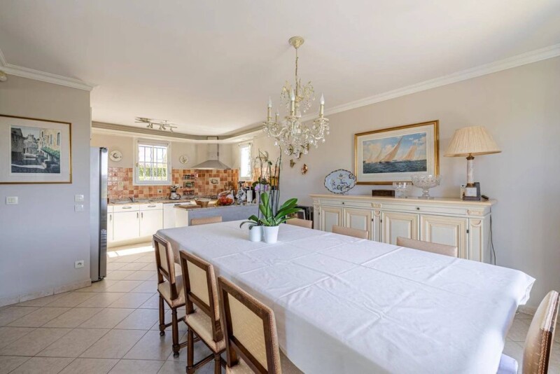 On the Côte d'Azur, Villeneuve near Biot, Vaugrenier, in a sought-after, secure estate with low charges. Beautiful detached villa of 142m2, recently built, in perfect condition and beautifully maintained. Dominant position with an enchanting, unobstructed panoramic view over a protected natural area, in absolute peace and quiet, not overlooked and perfectly south-west facing. Set on a completely flat plot of land, this villa has a beautiful swimming pool, spacious terraces, an enclosed garage and plenty of parking space. Inside, the house comprises an entrance hall with cupboard, a spacious lounge-dining room, an open-plan fitted kitchen and an office area that could be used as a fourth bedroom. Upstairs, there are 3 further bedrooms, one of which is en suite with its own shower room and dressing room, and a shower room for the other two bedrooms. The living room opens onto a large covered terrace offering a lovely, bucolic view of the surrounding hills. The garden is completely flat, planted with trees and easy to maintain. The villa is ideally located, close to the Parc de Vaugrenier, Biot, the sea and sports facilities, with easy access to the motorway and airport. What's more, popular international schools and shops are in the immediate vicinity. The property enjoys all the amenities and benefits of a recent construction: integrated air conditioning, double glazing outdoor lighting automatic watering etc... There's a lot to like about this property, and you'll want to visit it soon! Price including agency fees Agency fees included in the price The risks to which the property is exposed are available on the Géorisque website. georisques.gouv.fr Our ref :3657YBEFEN.