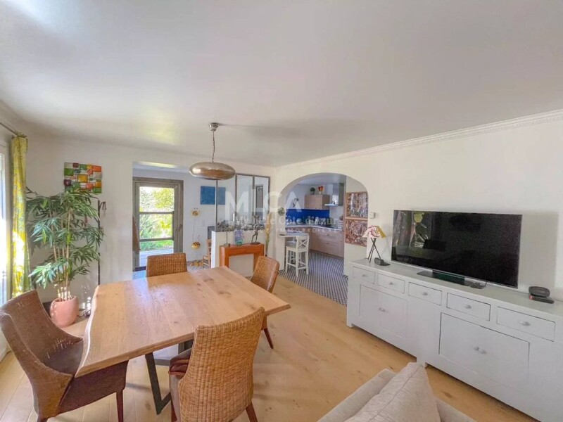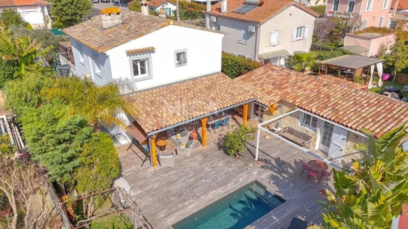 In a quiet area at the start of Cap d'Antibes walking distance from the beach and the center nice villa of 170m2 in perfect condition with 5 bedrooms on a land of 570m with pool. The villa is composed of a living room with chimney, open kitchen, one bedroom, one bathroom with WC, on the first floor 3 bedrooms, dressing, a shower room, independent WC. at the garden level connected to the mail villa with a veranda 2 bedrooms apartment sharing a bathroom with WC. Prime location !.