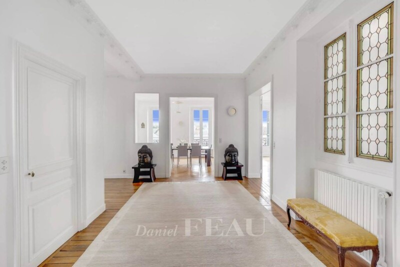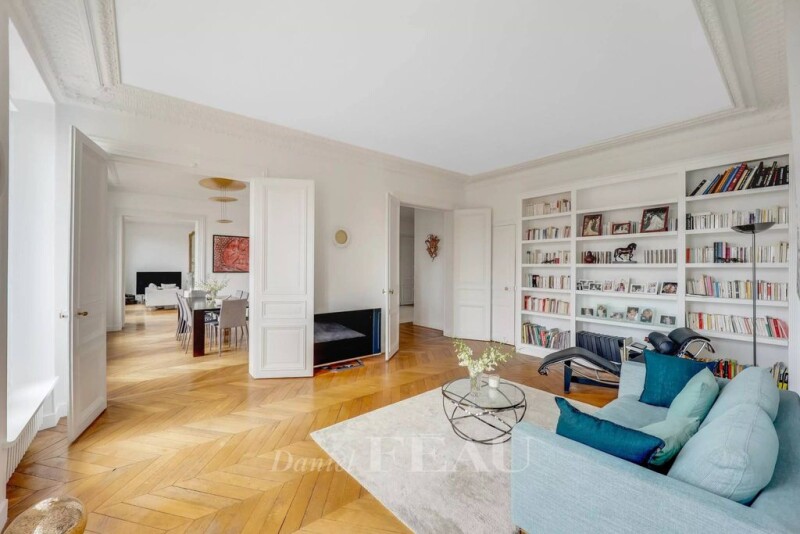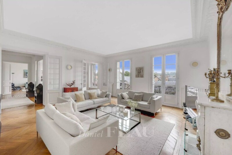 This magnificent east and west facing apartment with a balcony is on the 3rd floor of a refaced late 19th century building with a lift. Offering 271 sqm of floor space and 266 sqm of living space as defined by the Carrez Law, it includes a spacious entrance hall with a security door, a living/reception room, dining room and library featuring 3.20 metre high ceilings with mouldings, a fitted kitchen with dining facilities and a pantry (also accessed by means of the service staircase), four spacious bedrooms, two bathrooms and two shower rooms. Superb period features include Herringbone parquet flooring and marble fireplaces. The apartment is bright and benefits from no directly facing neighbours. Individual heating. Residents benefit from access to a shared garden. In a sought-after residential neighbourhood a 10-minute walk from Versailles Rive Droite station and 15 minutes from Place du Marché and rue de la Paroisse and the shops and restaurants. 4 minutes from St Jean Hulst High School. Easy A13 and A86 motorway access. The building was refaced in 2021.
