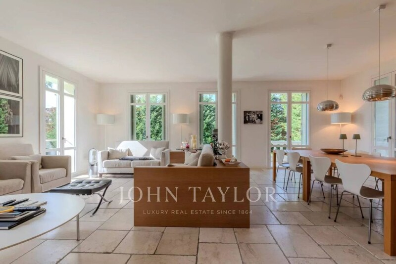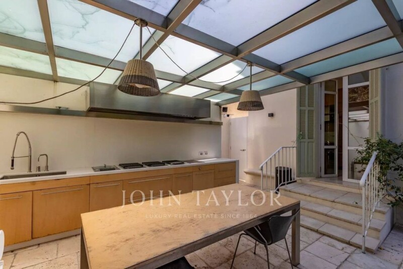 Magnificent belle époque villa, built in the 1920s and restored in 2014. Covering an area of 200 m² on a plot of 1200 m² with swimming pool. It comprises: Elevated garden level: entrance hall, shower room, living room, dining room, fitted kitchen. On the 1st floor: Master bedroom with bathroom and shower. One bedroom with shower room. 2nd floor: Three bedrooms with shower rooms. Solarium terrace with stunning sea views over the bay of Juan les Pins and the Lérins Islands. Technical basement Swimming pool Covered parking.