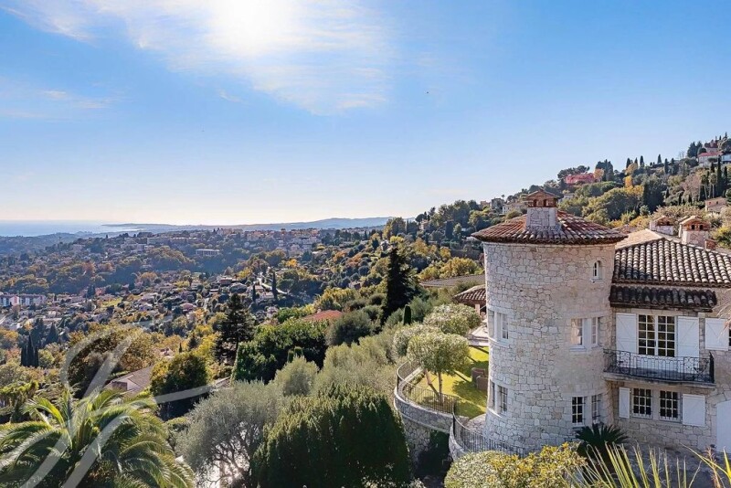 In a sought-after neighbourhood with panoramic sea and Baie des Anges views, a sumptuous stone-built “Demeure” of approx. 600 sq.m offers space and brightness within a gorgeous Mediterranean parc of approx. 3,950 sq.m with numerous Olive trees and a huge swimming pool and pool house. The villa comprises: an entrance hall, a large living room with fireplace, a dining room, a large kitchen, 6 bedrooms with en suite bathrooms, an office and a large 60sq.m room, perfect for an independent apartment or a games room opening to private garden terrace ; laundry, 2 cellars, a secured room and a garage for 8 cars and parking space for another 6 cars. The garden is up to the same standards as this exceptional Domain, landscaped, perfectly maintained all year long. The information on the risks likely to be exposed to this property is available on the Georisques website : www.georisques.gouv.fr État des risques et pollution: réalisé (null).