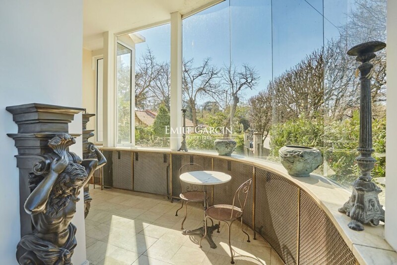 Located within easy reach of all local amenities in a residential area of Ville-d'Avray, this Second Empire character property presents a total surface area of ??approximately 419.23 sq.m ( 84 sq.m of outbuildings) on private grounds of approximately 2500 sq.m. It includes an annexed outbuilding. This family home has retained all its period features, including moldings, high ceilings, parquet flooring and fireplaces. On the ground floor, a round gallery of 18 sq.m with glass roof serves a large entrance, a triple reception room composed of two large living rooms and a dining room, a fireplace and a WC. At the garden level, you will find a large kitchen/diner, a pantry, a utility room, a boiler room, a shower room and direct access to the garden, plus a WC. On the first floor, there is a landing serving four bedrooms, two shower rooms and a bathroom, plus a WC. The second floor consists of three bedrooms, a shower room and several hallways. Additional WC. The garden is equipped with a carport for two cars, plus a converted greenhouse with terrace, large room, shower room and WC.