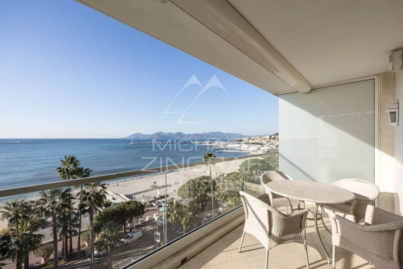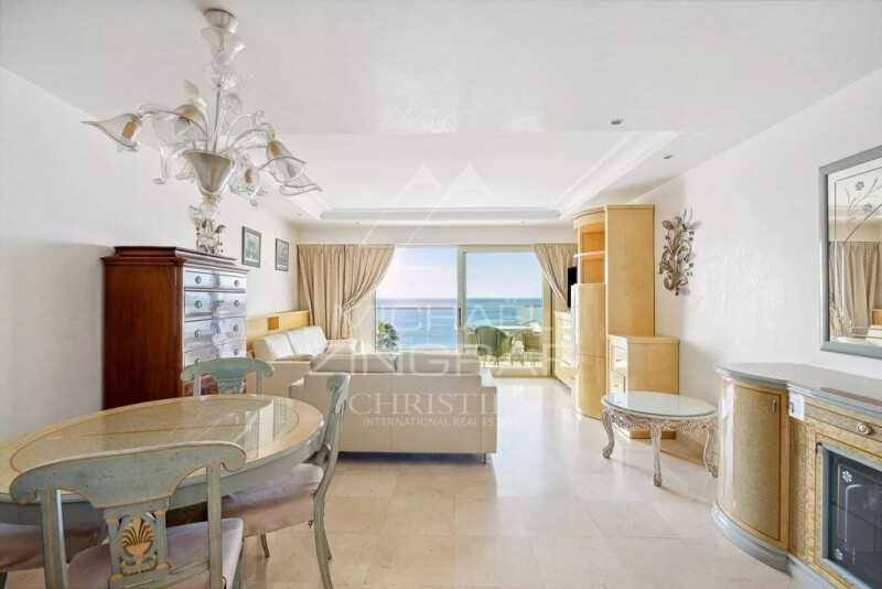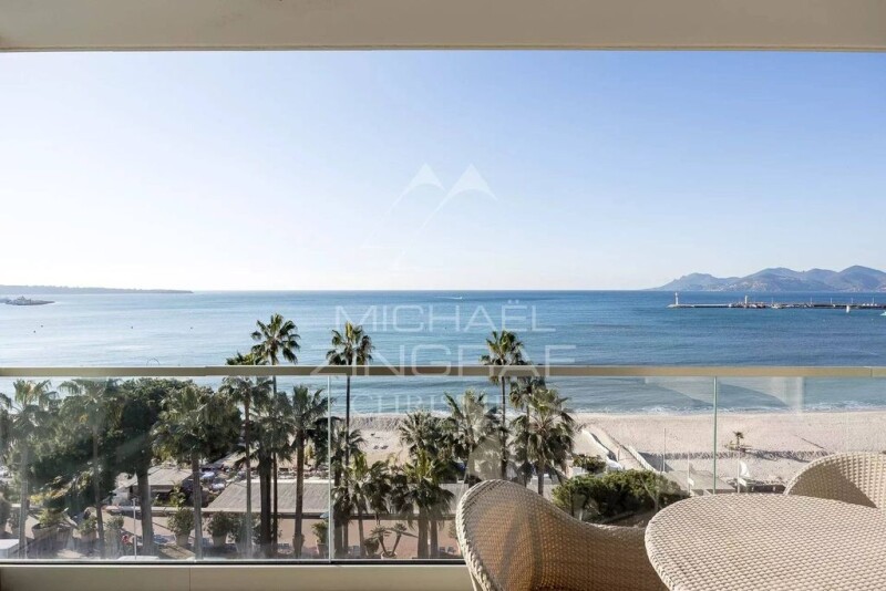 In a sought-after residence on the Croisette, with a panoramic sea view over the entire bay of Cannes, magnificent apartment on the 7th floor of approximately 84 m² with two en-suite bedrooms, an individual kitchen and a bright living room opening onto a south-facing terrace. Separate studio of approx. 10m², parking in the basement and cellar. Caretaker in the residence. Fees are payable by the purchaser.