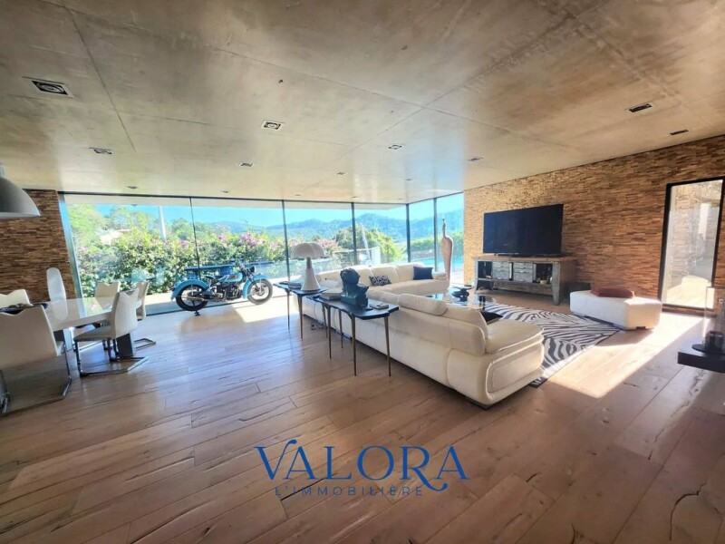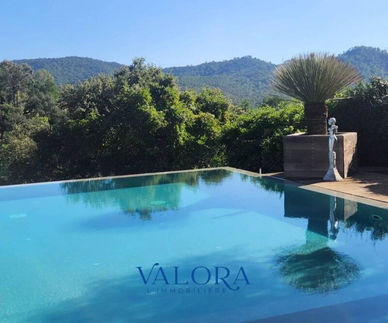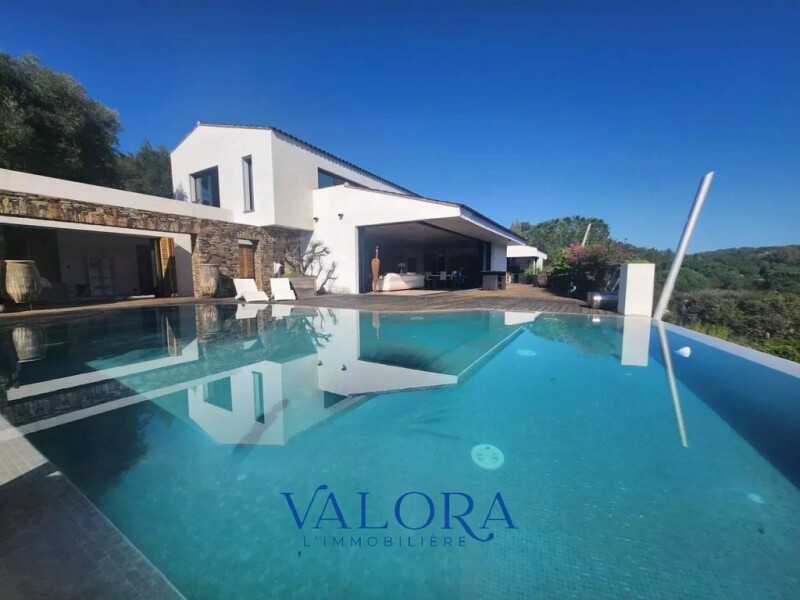 EXCLUSIVELY, discover this exceptional, one-of-a-kind villa near Hyères, Bormes-les-Mimosas and La Londe-les-Maures. Built in 2011, this contemporary architect-designed home perfectly combines stone, raw concrete and wood, offering an atypical and refined style. It has been designed with meticulous attention to detail to offer you optimum comfort. A true work of art, it boasts 430 m² of elegance and serenity, set in 3,594 m² of landscaped gardens. A spectacular 90 m² living room: Bright and spacious, its fully retractable bay windows offer a perfect transition between inside and outside, revealing a panoramic view of the Massif des Maures, the infinity pool and the surrounding vegetation with its Mediterranean essences. An Italian "Veneta Cucine" kitchen representing the perfect balance between timeless classic elegance and avant-garde modern design. It combines aesthetics and functionality. 3 suites : * One ground floor suite with dressing room, shower room and toilet. * A master suite on the first floor with maxi dressing room and luxurious bathroom. * A third suite upstairs, with private bathroom and dressing room. Relaxation areas: * Heated outdoor infinity pool overlooking terraces planted with citrus and olive trees, with breathtaking views of the surrounding hills. * Indoor wellness area with heated white mosaic pool, hammam and Jacuzzi, ideal for relaxing in any season. * Basement with 155 m² garage and exceptional stone wine cellar. An idyllic setting: Located in a quiet, verdant setting, this villa is just 15 minutes from Toulon-Hyères airport and 20 minutes from the beaches. It offers ideal proximity to the region's picturesque villages, beaches and Provencal vineyards. This is a UNIQUE home, designed for lovers of design, comfort and nature. In addition to its top-of-the-range features, the property boasts a rare asset: a 1,500 m² detachable plot, offering a unique opportunity to build one or more additional homes. Contact me now to discover this exceptional property. Nicole Peyrot : 06 72 22 00 16 Independent sales agent Registered RSAC DRAGUIGNAN 804 792 497 Information on the risks to which this property is exposed is available on the Géorisques.gouv.fr website. État des risques et pollution: réalisé (2021-06-08).