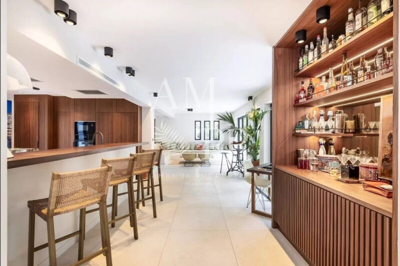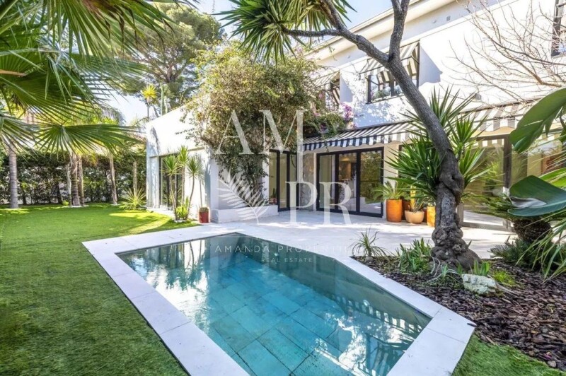 Située dans un secteur résidentiel et verdoyant, au fond d'une impasse, cette villa bénéficie d'une localisation idéale proches écoles et commerces, à seulement 10 minutes de la croisette. Avec une superficie d'environ 200 m², cette maison entièrement rénovée propose des prestations haut de gamme. Vous y découvrirez un vaste séjour lumineux, une cuisine ouverte parfaitement équipée, ainsi qu'une buanderie, une salle à manger et un bureau. Chaque espace est conçu pour maximiser la lumière naturelle, grâce à de grandes baies vitrées qui offrent une vue imprenable sur un jardin paysager. À l'extérieur, une belle piscine vous invite à la détente dans un cadre idyllique. À l'étage, l'espace nuit est composé de trois chambres spacieuses, deux salles de bains modernes et une somptueuse suite parentale avec dressing, salle de bain privative et terrasse. Cette villa, idéale pour une famille, dispose également d'un fort potentiel locatif. Le terrain de 600 m² complète ce bien d'exception, offrant à la fois confort et intimité.