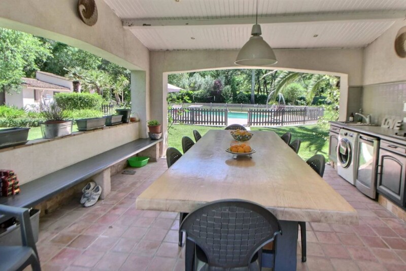 This villa is fortunate with a southfacing flat landscaped garden of 5000 m2 with swimming pool, equipped summer kitchen/pool house, double garage, large lounge terrace and boule pitch. Quietly located in Provencal style in a gated domain with a 10 minutes walk path to Valbonne village. The villa consists of an entrance, living room with fireplace, dining room, large kitchen, 4 bedrooms, two of which are on ground level. Independent apartment with living room, open kitchen, bedroom and shower room. 10 minutes from Sophia Antipolis and international schools, 15 minutes from Biot and the sea, 30 minutes from the airport, Nice and Cannes. État des risques et pollution: réalisé (null).