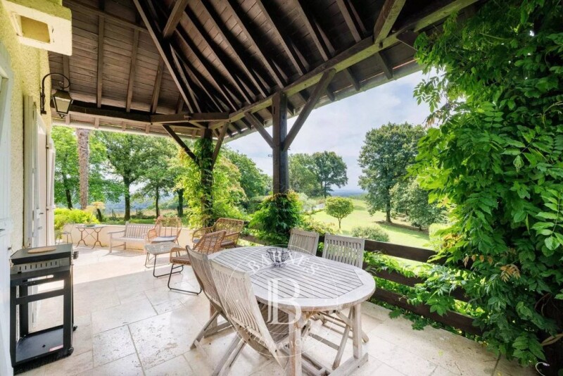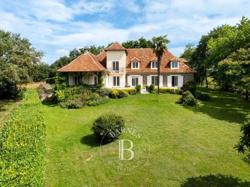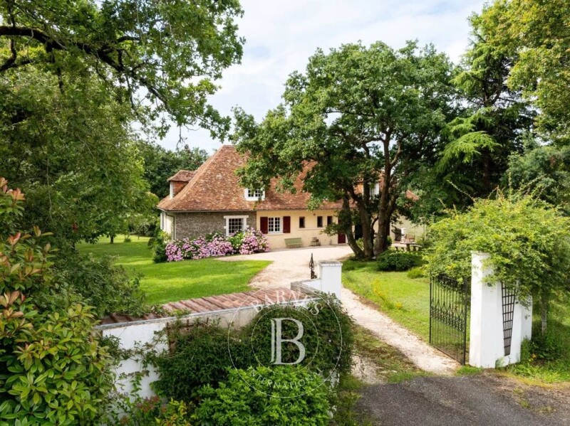 Near Orthez, master house of 400 m² of living space in very good condition and approximately 7 acres of garden and meadowland. The property is in a dominant position with views to the Pyrenees. The main house comprises of a large sitting room ( 60m²) with a fireplace and cathedral ceiling, a dining area, fully equipped kitchen, a laundry room, a large office, 6 bedrooms and 4 bathrooms; Double garage, a workshop, wine cellar and sauna. Central heating with pellets and double glazing. The outside consists of a pretty garden with many flowers and bushes, century old oak trees, palm trees, 2 stone terraces, a meadow, and a small wood . A swimming pool (10X5m) and pergola complete this property which certainly has charm and peaceful surroundings. Main shops, a hospital and TGV 10 minutes drive and bakers 5 minutes. Ski resorts 75 minutes drive and beaches 55 minutes drive. État des risques et pollution: réalisé (null).