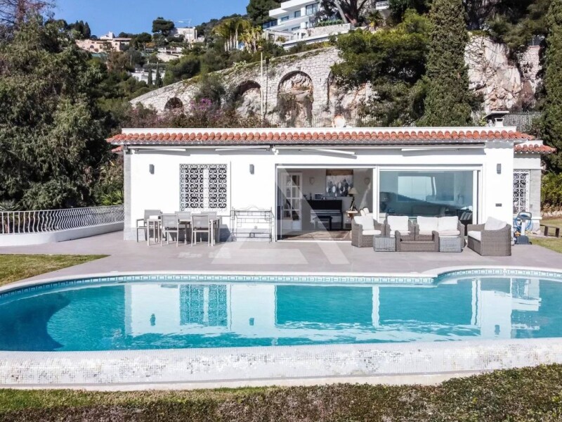 Villa located in a very sought-after area of Villefranche-sur-Mer, close to the Principality of Monaco and Nice. The 262 sqm (including 221m² of living space) property is set in 1,580 sqm of land with a swimming pool. Its elevated position offers panoramic views over the bay, the Mediterranean Sea and Saint-Jean-Cap-Ferrat. The villa is on two levels and is composed as follows: On the first floor, a living room with a dining area, a separate fitted kitchen, a bedroom, a study, a bathroom and a guest toilet. On the ground floor, two bedrooms, a games room, a bathroom, a guest toilet and a dressing room. A 30 sqm outbuilding and a large 40 sqm garage complete this sumptuous property. An extension of 100 sqm is possible (no additional floor, subdivision specifications). Fees are payable by the vendor unless otherwise stipulated in the mandate. Estimated annual energy costs for standard use: between €2,110 and €2,910. Average energy prices indexed in 2021. The property is not subject to co-ownership. The property is subject to an inventory of natural risks and pollution, which can be consulted on the Géorisques website: État des risques et pollution: réalisé (null).