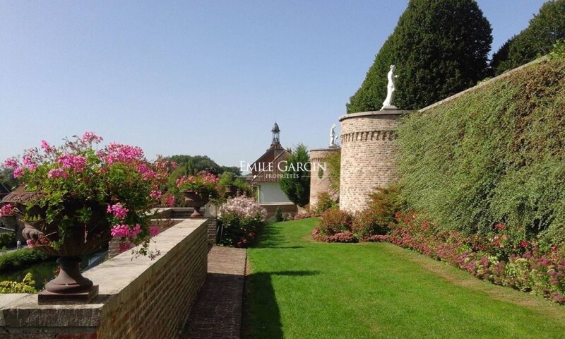 The architecture of this magnificent 18th century castle features pink bricks, white stones and a Mansard roof. It is located on the outskirts of a charming village in the Somme Valley and overlooks the river, with landscapes stretching as far as the eye can see. Inside, the admirably restored reception rooms feature sculpted decorations and paintings by Huet, the famous decorator of Versailles. The castle and its landscaped grounds are listed as Historic Monuments. Its annexes, outbuildings, dovecote and greenhouses are all fully renovated and listed in the Supplementary Inventory of Historic Monuments. It all sits on nearly 20 hectares of private land including a French-style garden, a pond and woods.