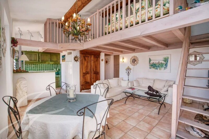 Perfect location in the heart of the village, between the famous Place des Lices and the port of Saint-Tropez, this real estate complex is on the 1st and 2nd floor of a Saint-Tropez house. The 36m2 studio includes a large living room, a closed kitchen and a bathroom/toilet. The 64 m² apartment on the 2nd and last floor consists of a bright living room, an open kitchen, a bedroom and its shower room, an attic bedroom, a bathroom/toilet, and a mezzanine. A large garage nearby completes the property.