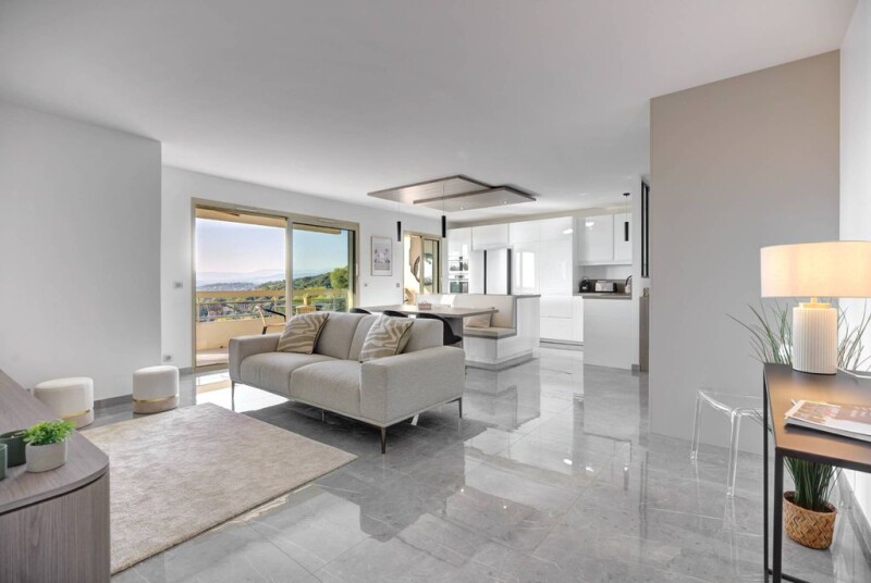 Come and enjoy the French Riviera lifestyle with this fully renovated 85 m2 flat. Nestled in a luxury residence, this unique space benefits from an exceptional geographical location. This well-appointed T3 comprises a living room and open-plan kitchen, opening onto a spacious, unoverlooked 30 m2 terrace with side views of the sea and rolling green hills. The master bedroom has a shower room, dressing room and study area, and opens onto the terrace. A second bedroom with en suite bathroom and guest toilet complete this property. The residence has an exceptional swimming pool with panoramic views over the legendary Bay of Cannes. You will also have access to a fitness room, sauna and solarium. A double garage in the basement and two cellars complete the property. This property is presented to you by your prestigious Côte d'Azur agency Sotheby's Realty International.