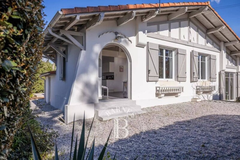 Barnes Arcachon presents this charming Basque-style villa in the heart of a sought-after neighborhood in Arcachon. Ideally located in the prestigious Abatilles district, just steps from Pereire Beach and local shops, this elegant Basque-style villa enjoys a preserved natural setting, surrounded by pine trees and bathed in light. All on one level, it stands out for its warm atmosphere and optimized layout. The spacious living area provides a welcoming space, while its four bedrooms ensure comfort and privacy. Outside, a perfectly oriented garden features a beautiful leisure pool and a large wooden terrace, ideal for making the most of sunny days. In excellent condition, this rare property on the market is an opportunity not to be missed.