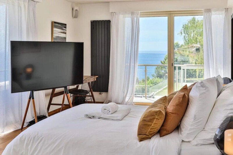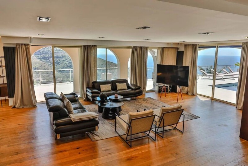 Overlooking the hill of Eze, down to the sea, this magnificent, renovated villa of 323 m2 sits in grounds of 4,593 m² planted with Mediterranean trees. The property is part of a small Domaine and offers majestic views of the sea and surrounding mountains. Renovated using top-of-the-range materials, this light-filled villa comprises a ground-floor entrance hall with guest toilet, a vast double living room with dining area, a large modern kitchen and a ground-floor bedroom with bathroom and dressing room. An independent duplex studio apartment completes this level. At the upper level is a master suite with large bathroom and dressing room, a second master bedroom with bathroom and dressing room, and a 3rd bedroom with shower room. The unoverlooked garden offers plenty of space for relaxing, including a large heated swimming pool and a summer kitchen. The villa also includes a double garage and several outdoor parking spaces. Security is assured by an internal and external video surveillance system. Possibility of extension.