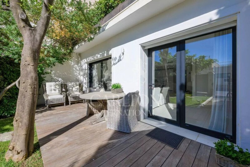In the heart of the Palm Beach district, within walking distance of shops and the Moure Rouge and Croisette beaches, this unique contemporary villa, set on a 200m² plot with parking space, offers approx. 135sqm of living space: garden level: living room with fully equipped open-plan kitchen, bedroom with en suite bathroom and dressing room, bedroom with en suite shower room and dressing room, guest toilet, -upstairs: a master bedroom with en suite bathroom and dressing room, with access to a sun terrace to the south and one to the north. REF 00510.