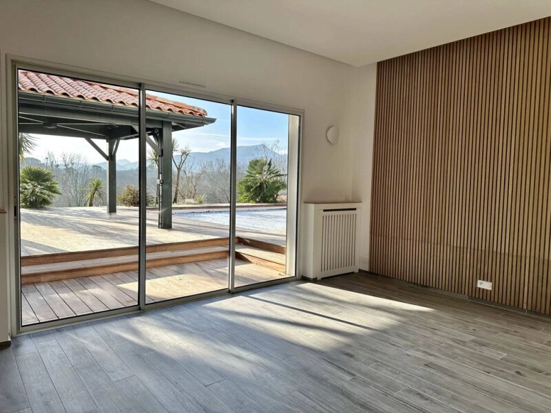 Saint-Jean-de-Luz, with direct access to the Chantaco golf course, come and discover this magnificent villa completely renovated with high quality materials. This unique property offers all the comfort you are looking for: large reception areas, fully equipped kitchen, utility room, covered summer kitchen on a magnificent south-facing terrace, 7x7m square swimming pool, gym and double garage. All this, completed by 5 bedrooms including a master and a breathtaking view of the mountains. The plus: direct access to the Chantaco golf course at the end of the land which offers 1.4 hectares of woodland. Price: 2,995,000 euros Fees payable by the seller.