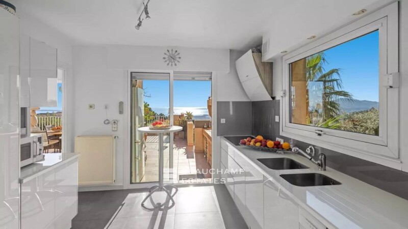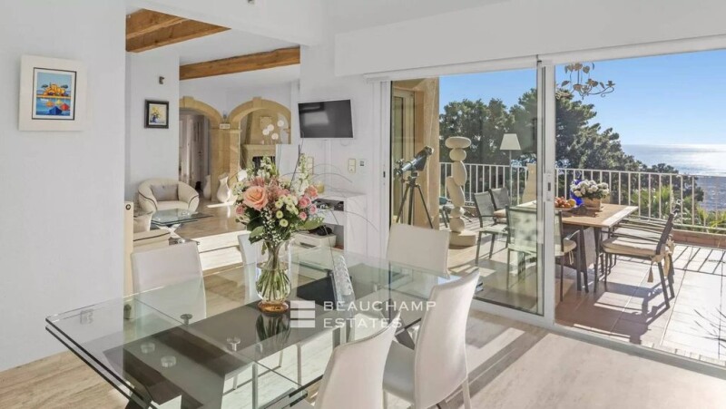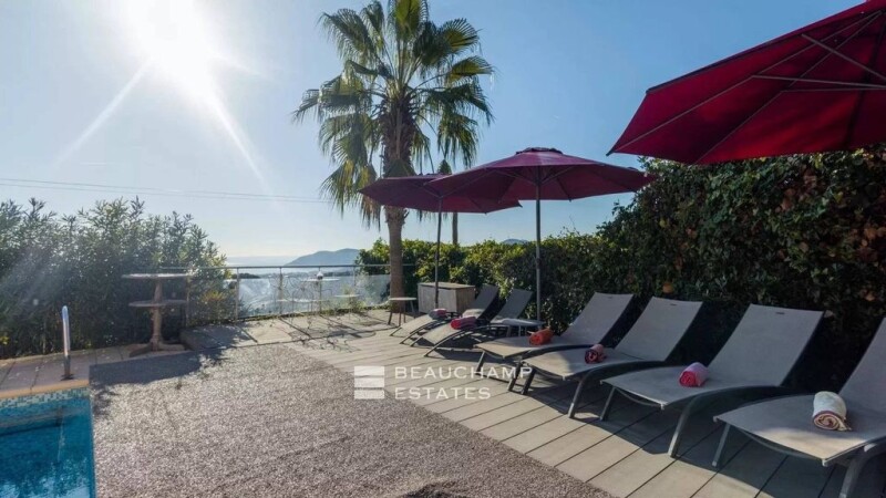 This charming villa offers a breathtaking view of the sea and a wonderful atmosphere of comfort. With its south-facing orientation, it allows you to enjoy sunlight throughout the day, all year round. This property is designed to ensure that every family member and guest feels at ease. The two levels are connected but fully independent, each with its own entrances, living rooms, dining areas, and kitchens. On the upper level, you’ll find two bedrooms and two bathrooms, while on the lower level, there are three bedrooms and two bathrooms. A cinema room, workshop, pantry, and garage complete this property. Filled with natural light, the villa offers numerous terraces for relaxation, whether in the warmth of the sun or the cool of the shade, and the expansive pool provides a peaceful haven. An ideal villa for a family residence or an investment opportunity. Energy class : C - Climat class : C / estimated annual costs for standard use : between 2740€ and 3770€ (ref year 2021). Information on the risk to which this property is exposed is available on the Geohazards website : www.georisques.gouv.fr.