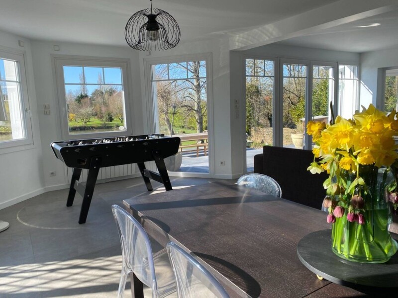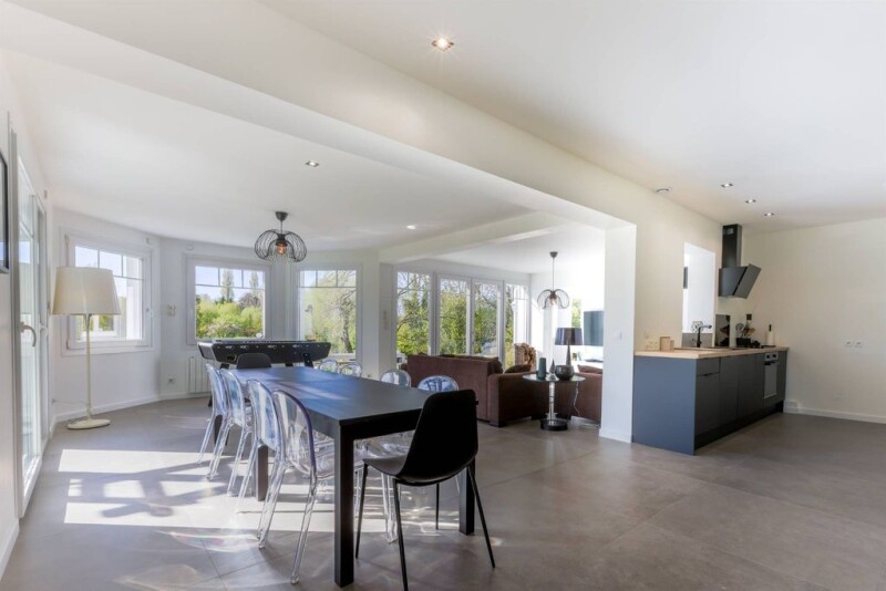 Exclusive, on the edge of Le Touquet, this pretty villa is set on a magnificent plot of 8,000 m2 with pond. Built on one level, this house underwent a complete and serious renovation in 2021. It is composed of an entrance hall, triple living and dining room, fireplace with wood fire all in access on a beautiful terrace overlooking the pond. Semi-open kitchen on the reception area, ultra modern and very well equipped. 5 bedrooms of which 2 have their own bathroom or shower room. A sub-complete of 150 m2 completes this unique property (laundry area, garage 3 cars, wine cellar and storage cellars. On the technical side, all the windows are double glazed, motorized shutters, high-end electric heating. A haven of peace 5 minutes from the Touquet center. Simple and refined decoration. The environment is exceptional. In the immediate vicinity of shops. Regulatory information on the risks to which this property is exposed will be available on the Georistics website: www.georisques.gouv.fr.