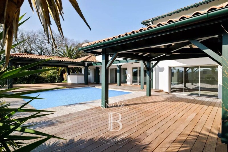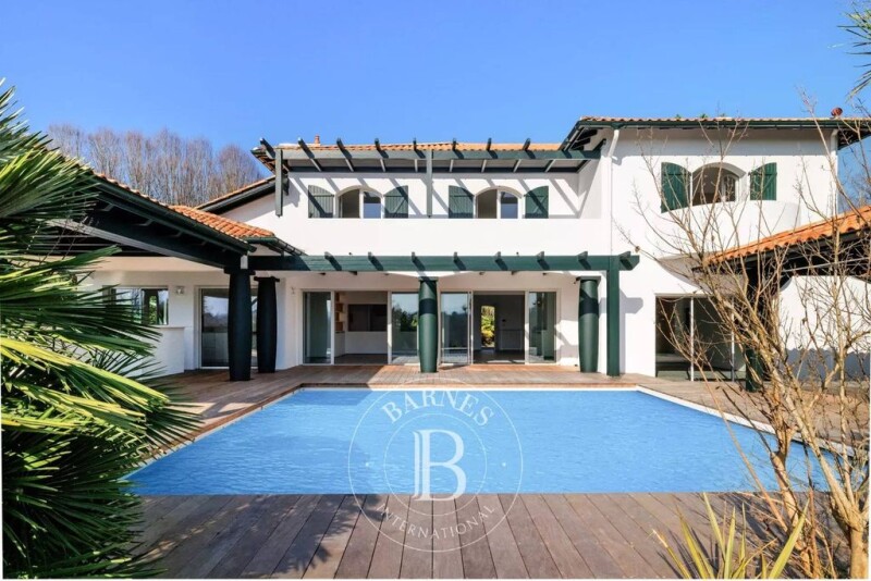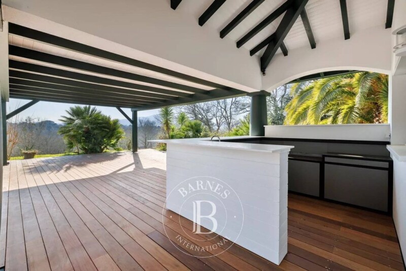 Located in a peaceful area and close to the shops of Saint Jean de Luz, beautiful house entirely renovated with taste (completion January 2024). The house of 350 m² is located on a wooded plot of 1.4 hectares with swimming pool and offers an exceptional view of the mountains. The house features beautiful living rooms ooening onto a south facing terrace. 2 cellars, 2 garages. Swimming pool 7x7m, terrace in Ipe of more than 200 m², summer kitchen.