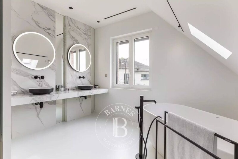 In the heart of the highly sought-after Côte Pavée district, very close to schools, shops, transport links and the future metro line, this fully renovated 1950s house spans around 335 sqm. The house has 3 levels. On the ground floor, an entrance hall opens onto a magnificent, spacious living room of over 100 sqm, with a top-of-the-range fitted kitchen and a study. The lower level comprises 2 bedrooms, each with its own shower room, dressing room and utility room. Each bedroom opens onto an English courtyard, providing plenty of natural light. A superb staircase leading from the living room leads to the first floor, comprising 2 large bedrooms, each with its own shower room/bathroom and an exceptional dressing room. Reversible air conditioning, interphone/visiophone, alarm, home automation, top-of-the-range fitted Poliform kitchen, Technal joinery, electric shutters with centralised opening, integrated Bose audio system, extensive bespoke storage space. Goods lift linking the different levels. This house offers truly exceptional features, combining modernity and comfort. The features are top-of-the-range, with fine materials and perfect finishes. Wooded garden with heated saltwater swimming pool surrounded by a lovely terrace. There is a garage for one car and the possibility of building an adjoining garage for a further 2 cars.