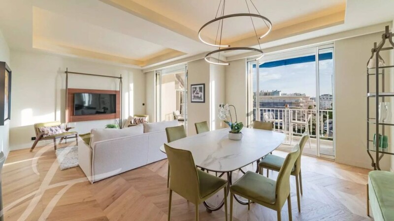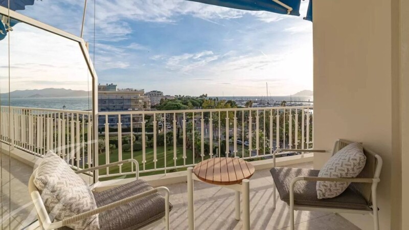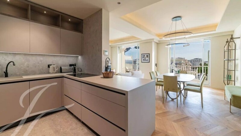 Located on a high floor of a luxury residence on the Croisette, this flat offers a beautiful view of the sea, the Port Canto and the Esterel massif. It is composed of a living room, an open kitchen, 3 bedrooms en suite and a 10 sq.m terrace facing south west. A cellar is included. Beaches and shops nearby.
