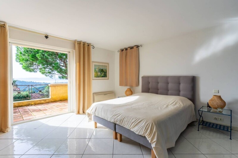 Elegant Provencal architect villa nestled in the heart of a private and secure domain in Sainte Maxime, offering a breathtaking view of the sea. You will be charmed by its vast living room and dining room, opening onto a covered terrace and a lush garden decorated with Mediterranean species. The fully equipped kitchen has an adjoining pantry for added convenience. On the night side, two bedrooms on one level and a bathroom as well as a sumptuous master bedroom upstairs, with dressing room and terrace offering a magnificent view of Saint Tropez. This villa also includes a large garage and parking for several vehicles outside. The possibility of creating a swimming pool with a flat and single-storey space.