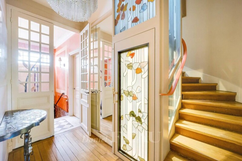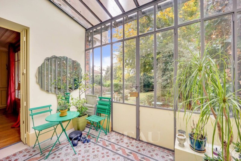 This fully south-facing late 19th century millstone-built property is located in the Quartier des Prés neighbourhood. Offering 395 sqm of floor space and 322 sqm of living space on three floors with a lift, it is set in a 735 sqm plot with a leafy garden and a south-facing terrace to the rear. A vestibule leads to a 40 sqm living/reception room with a fireplace, a 24 sqm dining room, a drawing room or study, a kitchen with dining facilities accessing the terrace, and a bright conservatory. Upstairs are a master bedroom with a bathroom and dressing room, an original Art Deco style study, two further bedrooms one with a dressing room, and a bathroom. The top floor comprises three spacious bedrooms, two shower rooms, and an artist’s studio or possible 7th bedroom. On a total basement with three storage rooms, a boiler room and a utility room. In a convenient location 9 minutes from the centre of Versailles, rue de la Paroisse and Place du Marché, near the schools, a ten-minute walk from the station and 8 minutes from the entry to the chateau. Easy A86/A13 motorway access.