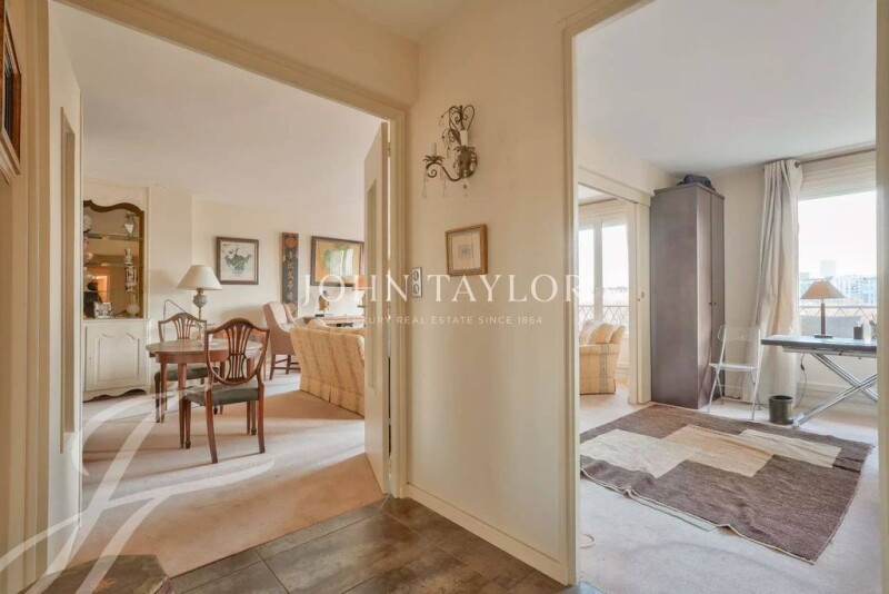 Paris 16. Between Passy and Trocadéro. In a building dating from 1959, on the 7th floor with elevator, a 77.39 m2 loi Carrez apartment, composed as follows: - entrance hall - large living room - separate kitchen - spacious bedroom - shower room - study or 2nd bedroom - separate WC - hallway with storage space All rooms in the apartment offer exceptional views of the Seine and the Eiffel Tower, as well as access to the large 13.50 m2 balcony (table for dining facing the view). The apartment is south-east-facing and not overlooked. In need of complete renovation. Close to Trocadéro gardens and Passy metro station. État des risques et pollution: réalisé (null).