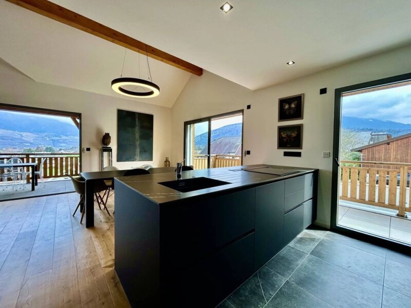 Exclusively in the commune of Saint-Jorioz. We're offering you a magnificent 120m2 duplex loft. Located in a small condominium of 5 lots, built in 2020, it is spread over two levels and comprises a small entrance hall with storage space, opening onto a superb living room bathed in light, with an open, fully-equipped kitchen; a corridor leads to a first bedroom, a bathroom, a laundry room and a toilet. Access to two beautiful terraces is also possible from this living space. Upstairs, you'll find two bedrooms, including a master suite with bathroom and dressing room. This property, built by a local developer, combines attention to detail with a pronounced taste for high-quality materials. The tasteful decoration lends a warm ambience to this modern setting. Ideally located between lake and mountains, this place offers a daily life far from the hustle and bustle of the city, surrounded by fields, yet just a few minutes' drive from amenities and the lake. The breathtaking views, calm and beauty of this property are sure to win you over! All you have to do is put down your suitcases and enjoy this privileged setting... A double garage and cellar complete this property. We'd be delighted to show you this beautiful place, so don't wait any longer!.