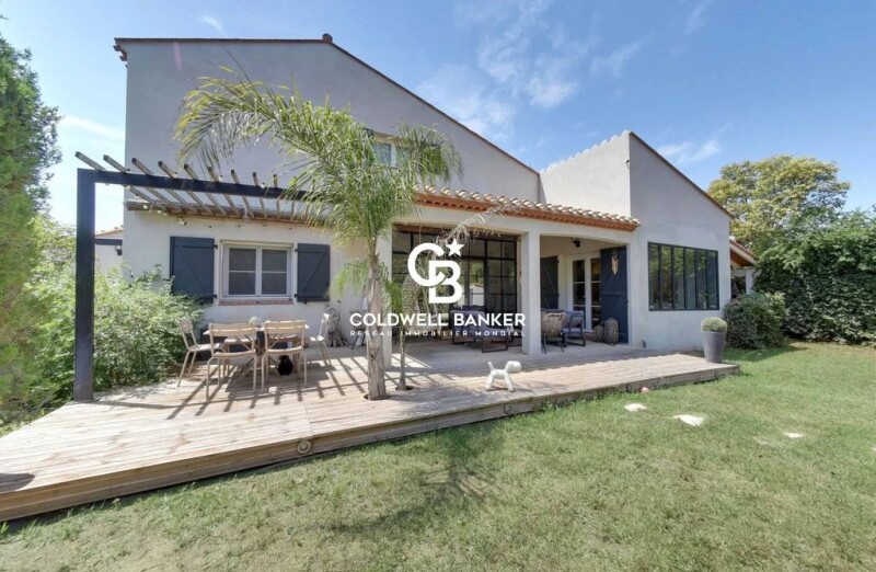 In a sought-after area of Perpignan, discover this magnificent unoverlooked family home, built on a plot of over 1800 m². The beautifully landscaped garden features a swimming pool and offers a peaceful, serene living environment. As you enter, you'll be greeted by an entrance hall leading to a convivial living room with fireplace and a charming glass roof giving access to the garden and covered terrace. The fitted and equipped kitchen opens onto the dining room, also with direct access to the garden. The first floor includes two large bedrooms, a modern bathroom and a separate toilet. Upstairs, a large multi-purpose area that can be used as an office or playroom, three spacious and bright bedrooms, a second bathroom and an additional toilet complete the house. A practical garage for parking and storage completes the offer. This home combines comfort and functionality, ideal for a fulfilling family life. Come and discover this haven of peace where life is good. For more information or to arrange a viewing, please contact us. Translated with DeepL.com (free version).