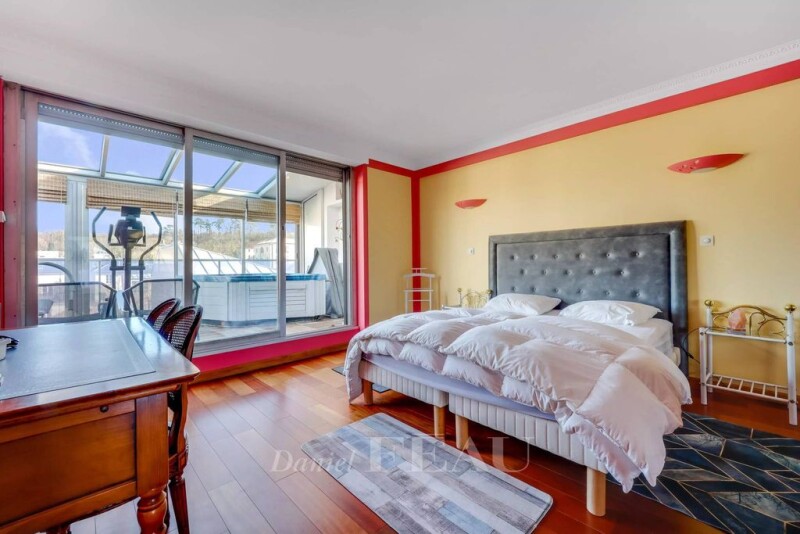 This magnificent 191 sqm dual-aspect apartment on the 4th and top floor of a mid 20th century building with a lift commands a superb open view of the Evêché and Meudon forest. Renovated throughout and beautifully appointed, it includes a 75 sqm living/reception room opening onto a 30 sqm terrace, a master suite with an adjacent bathroom and dressing room, four further bedrooms (one opening onto a veranda with a jacuzzi), three shower rooms and two fitted dressing rooms. With two parking spaces and two cellars benefiting from lift access. In a convenient location a ten-minute walk from the station, 5 minutes from the shops, and in the immediate vicinity of the schools and bus lanes. État des risques et pollution: réalisé (null).