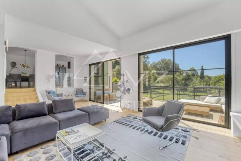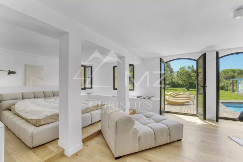 Joint Sole agent. Located in the heart of the charming village of Valbonne, this Provencal villa has been fully renovated to modern standard. In a dominant position, it benefits from clear views and south-facing exposure, making it bright and pleasant to live in year long. The new windows blend modernity with provencal style. The large sliding doors remove the boundaries between the indoor and outdoor areas. In winter time, a modern fireplace provides cosiness. Another highlight is the illuminated tropical hardwood terrace with more than 120 sqm. The modern floor plan was constructed to provide the villa with maximum privacy. There is a separate guest apartment with its own entrance on the pool level as well as a separate office (or nanny room or fitness room). Set in a 1700 sqm plot, this 5-bedroom house features an easy-to-maintain lawn garden area with mature trees, a swimming pool, a pool house and an outdoor kitchen with outside dining area. Ideally located within easy walking distance (400 meters, 5 minutes) of the village center with its shops and restaurants. Despite its central location, the property provides complete silence and privacy. État des risques et pollution: réalisé (2023-07-31).