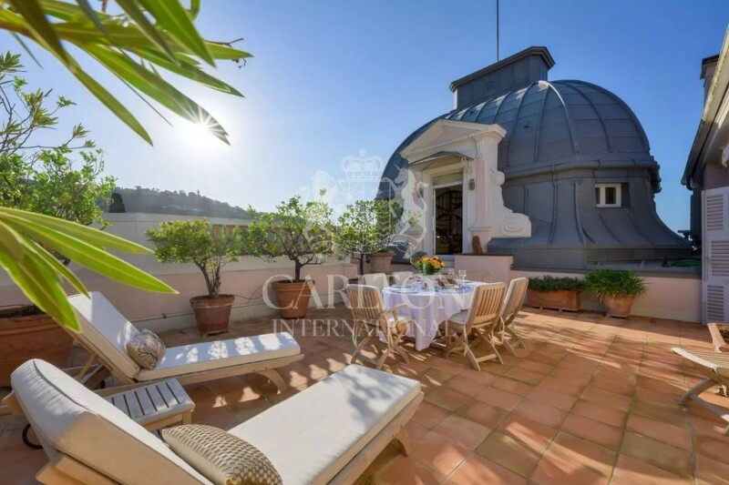 SOLE AGENT -Cannes, this unique, elegant 305m2 apartment occupies the entire top floor of a historic, noble, Belle Epoque mansion, constructed in 1875. The apartment has been renovated with great taste, using the finest materials, while retaining the atmosphere of the era. Located within a private gated estate, near the celebrated Bellini Chapel, the property is only 10 minutes from the famous Croisette Boulevard, boutiques and beaches. Enjoying complete quiet and beautiful views of Cannes and the sea, this a rare opportunity to acquire a truly exceptional penthouse. The main apartment has three en-suite bedrooms and a vast 81 m² double reception room, dining room and modern fully equipped kitchen. The 60 m² terrace leads to a guest apartment under the original, elegant domed roof. Reference: 00303 -- The average energy expenditure in 2023 is between 7840 € and 10680 € per year. Number of lots in the residence/condominium : 4 No current legal procedure affecting the residence/condominium. Agency fees are at the expense of the seller. Information on the risks to which this property is exposed is available on the GeoHazards website État des risques et pollution: réalisé (null).