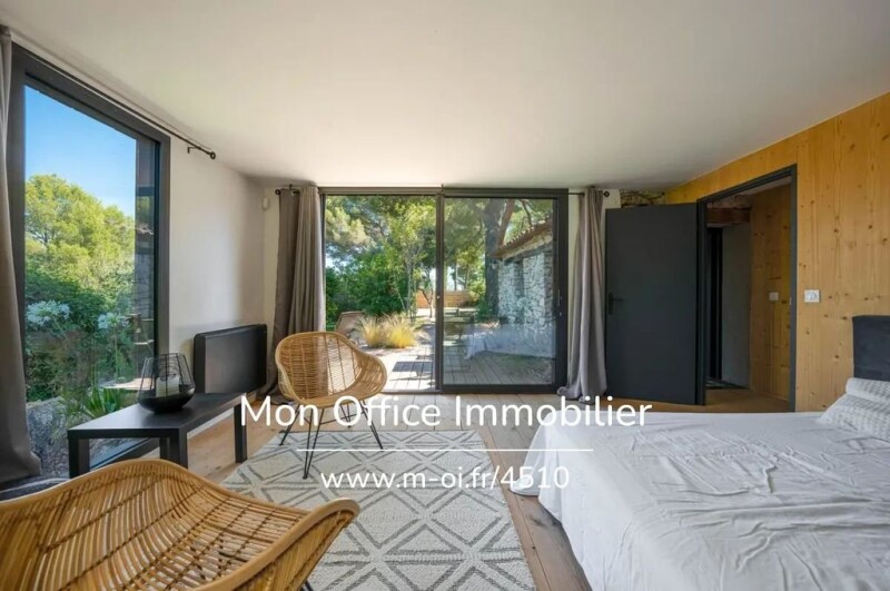 M-OI Aix-en-Provence offers for sale, 10 minutes from Aix-en-Provence in a popular area, a house of approximately 196 m2 including a large living kitchen and a living room revolving around a beautiful Rognes stone fireplace. On one level, you will find 2 bedrooms sharing a bathroom, a master suite with shower room and a laundry room. Upstairs, 2 additional bedrooms, one with a bathroom and an office space complete the package. The exterior offers, on 5,200 m2 of land, a bastidon converted into a T2, very nicely renovated, an additional outbuilding of approximately 10 m2 then a swimming pool and a pool house. Calm, charm and open view make this property a rare property on the Aix market. -- -- À votre service : Elodie HAVRET - +33745039019 Agent commercial Mon Office Immobilier immatriculé au RSAC de AIX EN PROVENCE - N°790 673 214 00033 Référence annonce : 4510-EHA. Le DPE est visible dans l'onglet informations énergétiques. Le prix indiqué comprend les honoraires à la charge de l'acheteur d'un montant de 4.27% inclu dans le prix affiché. Les informations sur les risques auxquels ce bien est exposé sont disponibles sur le site Géorisques : www.georisques.gouv.fr.