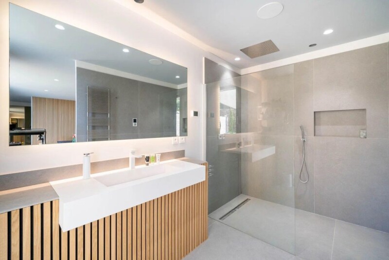 MANDELIEU LA NAPOULE Rare opportunity near Cannes, ideally situated just 10 minutes from the beaches and the port of La Napoule. This magnificent contemporary villa with an elevator is tranquil, private, and boasts a panoramic sea and hill view, featuring spacious and elegant interiors. On the ground floor: reception area, office, 2 bedrooms, and a shower room. On the garden level: an open kitchen leading to a living and dining area, a master bedroom with a shower room, dressing room, and a massage room. In the basement: a 108 m2 space with a kitchen, a bathroom, a laundry room, a wine cellar, and technical areas. On the top floor: an immense 180 m2 rooftop terrace offering a panoramic view of the sea and hills. Outside: a pool surrounded by a teak terrace and a pool house providing single-level living space. Parking for 6 cars. To discover more about this exceptional luxury sea view property, contact us today.