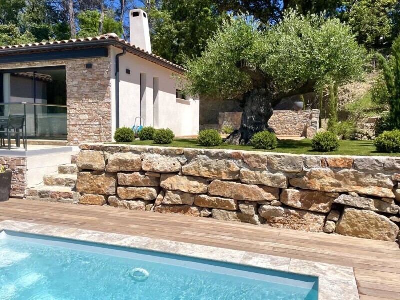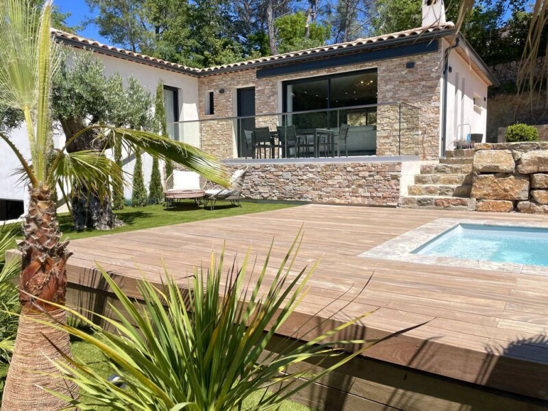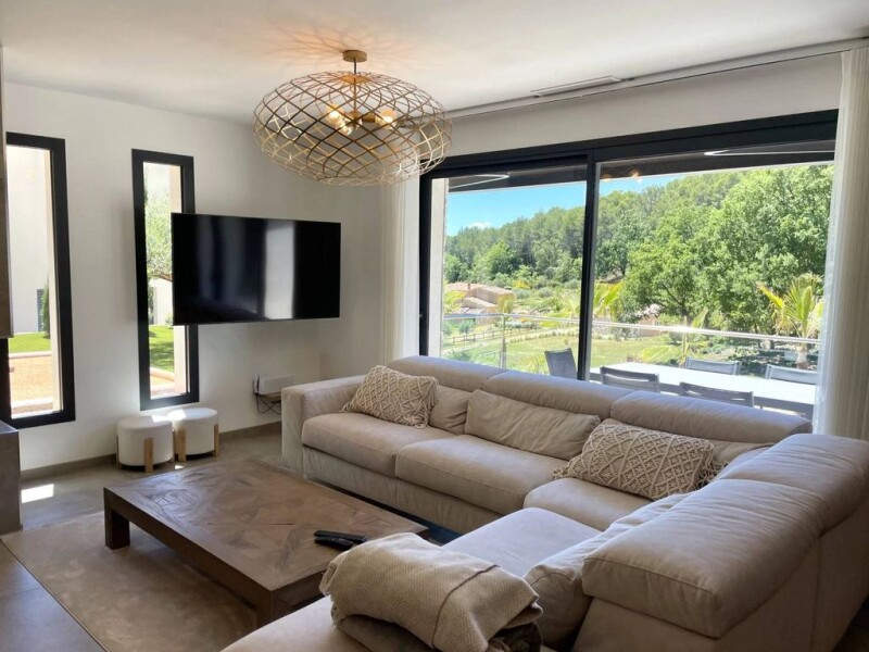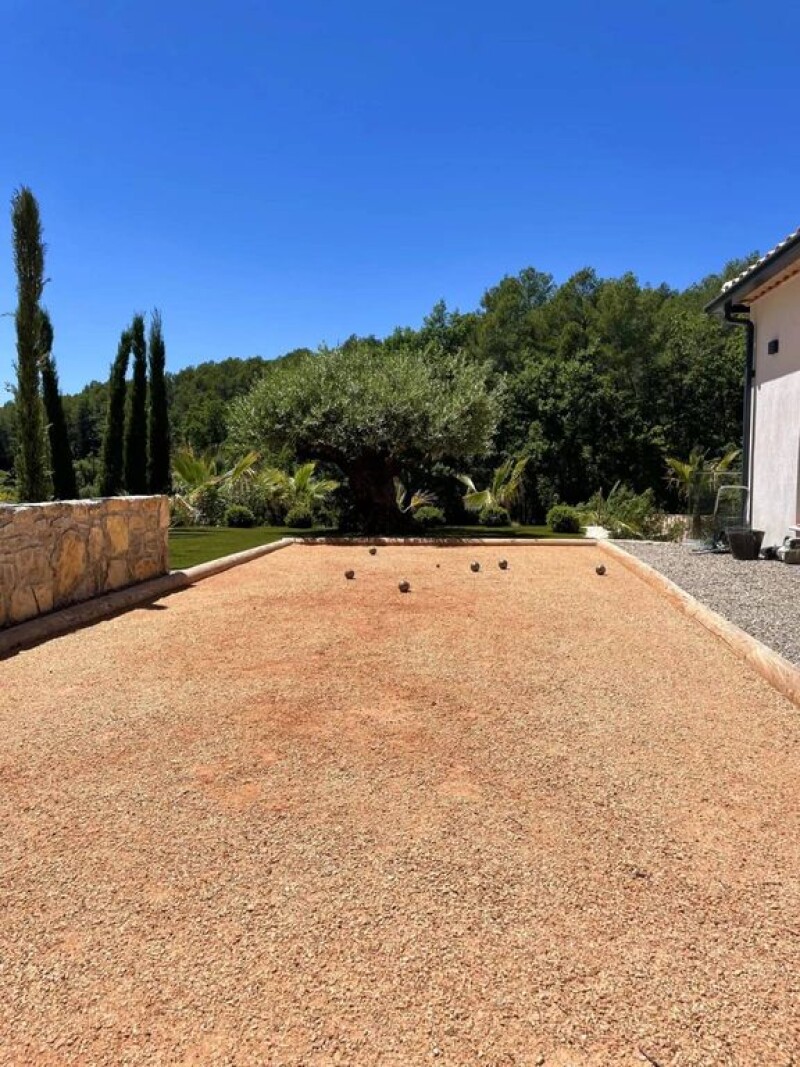 It's just a 2 minute drive from the centre of the charming village of Lorgues where this comfortable house is situated. recently built and ready to move in. The house has been built with high quality materials and has a layout. You enter the house on the first level. Here you will find a sunny open living room and a kitchen. A laundry room, 2 bedrooms with a shared bathroom, a master suite (33m2)with dressing opening up to the terrace outside. A jeux de boules/petanque area and a BBQ area are located at the back of the villa. A nice terrace with electric awning where you can enjoy the view all year round. The garage is large and measures 53m2. There is an easy access driveway with parking for several cars. The villa is situated in a residential area, calm and only a few minutes from the center. Ideal for clients looking for permanent living with little maintenance or an easy lock up and go villa if you like traveling or living abroad.