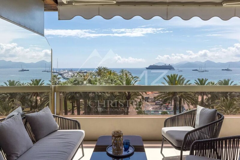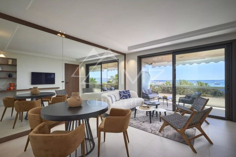Ideally located on a high floor, in a luxury residence with caretaker on the Croisette, beautiful fully renovated apartment with a surface area of approx. 61m2. The apartment comprises a beautiful living room and a south-facing master bedroom with dressing room and en suite shower room, all opening onto a deep terrace of approx. 20m2, a separate fully-equipped kitchen and a second bedroom with en suite shower room and dressing room. The 20 m2 terrace enjoys unobstructed sea views and excellent sunshine all day long. A basement cellar completes the property. Possibility of purchasing an additional garage in a nearby residence. État des risques et pollution: réalisé (null).